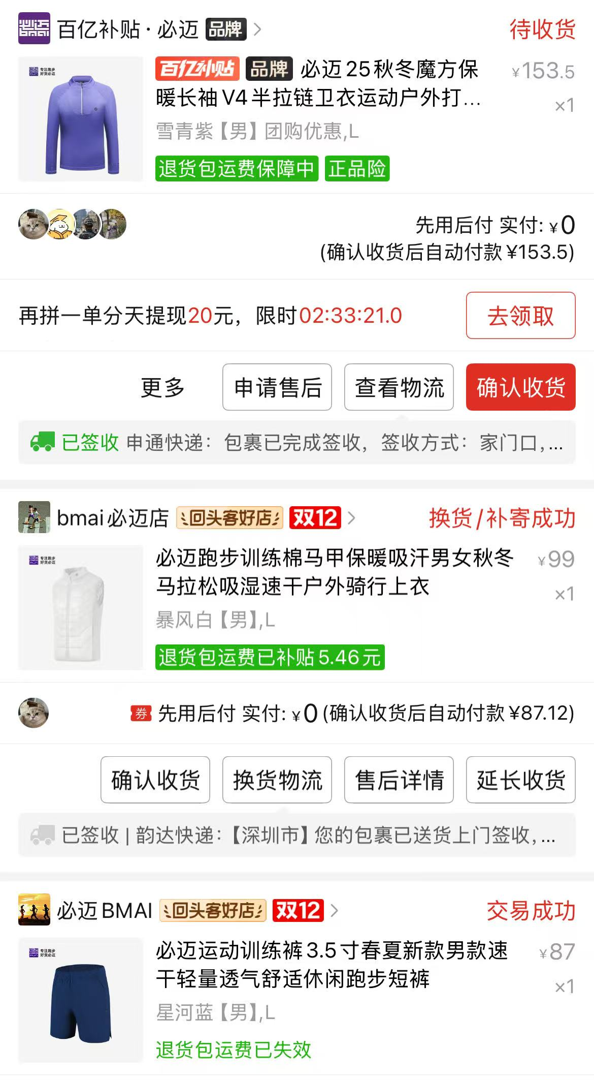 跑步上衣和短裤则简单许多,目前手里一条迪卡侬和一条必迈的短裤,记得每条都是几十块钱。短袖也是迪卡侬的买的。由于前些日子深圳突然降温,顶着风跑,上身冷嗖嗖,跑了几公里身体都热不起来。为此,增购了必迈家的长袖方格以及马甲。期间马甲还因为尺码问题换了次货,他们家尺码不同款式还真不能都买一样的。这里尤其要说下保暖长袖,150的价格个人觉得比某功、某道性价比高一大截,实际穿了一次跑8KM,保暖效果很不错,对于深圳完全够用。