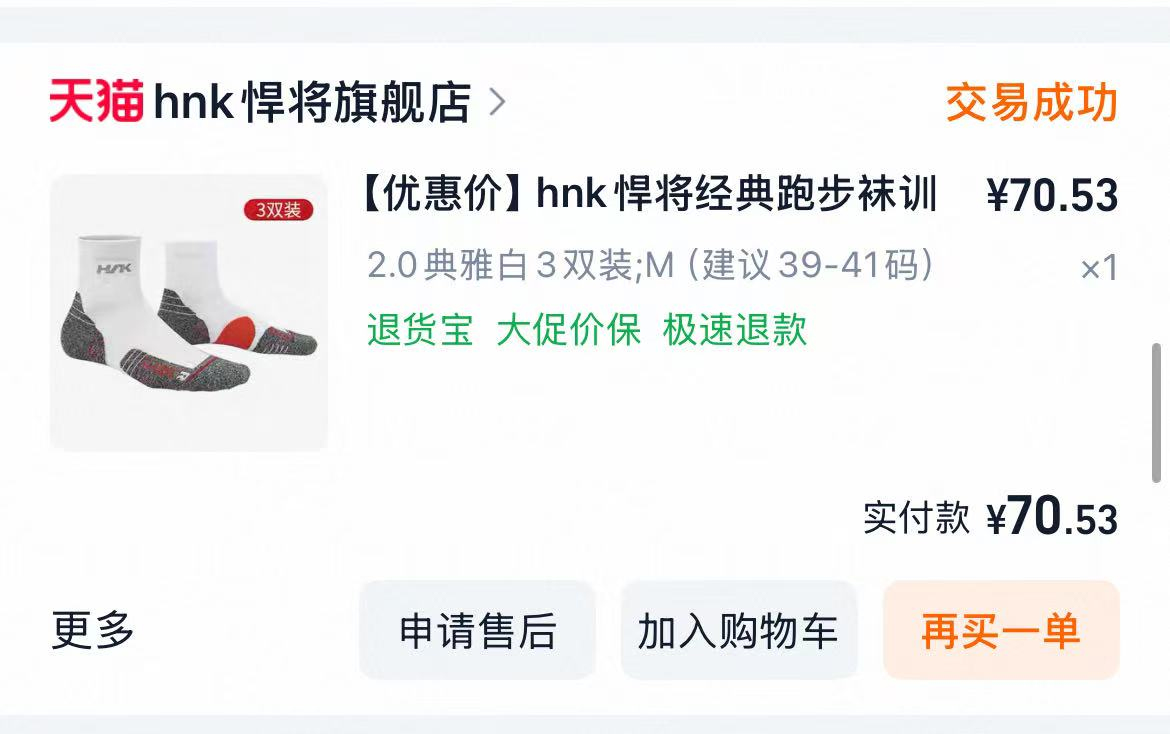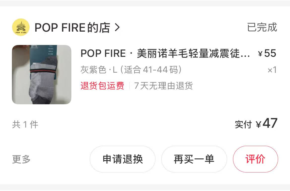 最后就是袜子了,袜子看了一些UP主评测,最终买了三双悍途2.0的跑步袜,也买了POP FIRE家的羊毛袜。悍途的袜子还专门有分左右脚,在脚底、前后掌都有做加粗设计以及带反光条。